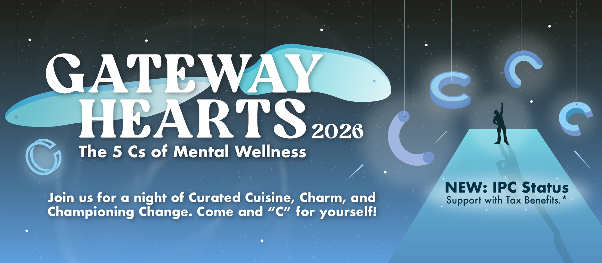 This year, Gateway Hearts 2026 fundraising gala shines a spotlight on The 5 Cs of Mental Wellness — five essential building blocks for lifelong well-being: Character, Coping, Confidence, Connection, and Caring.